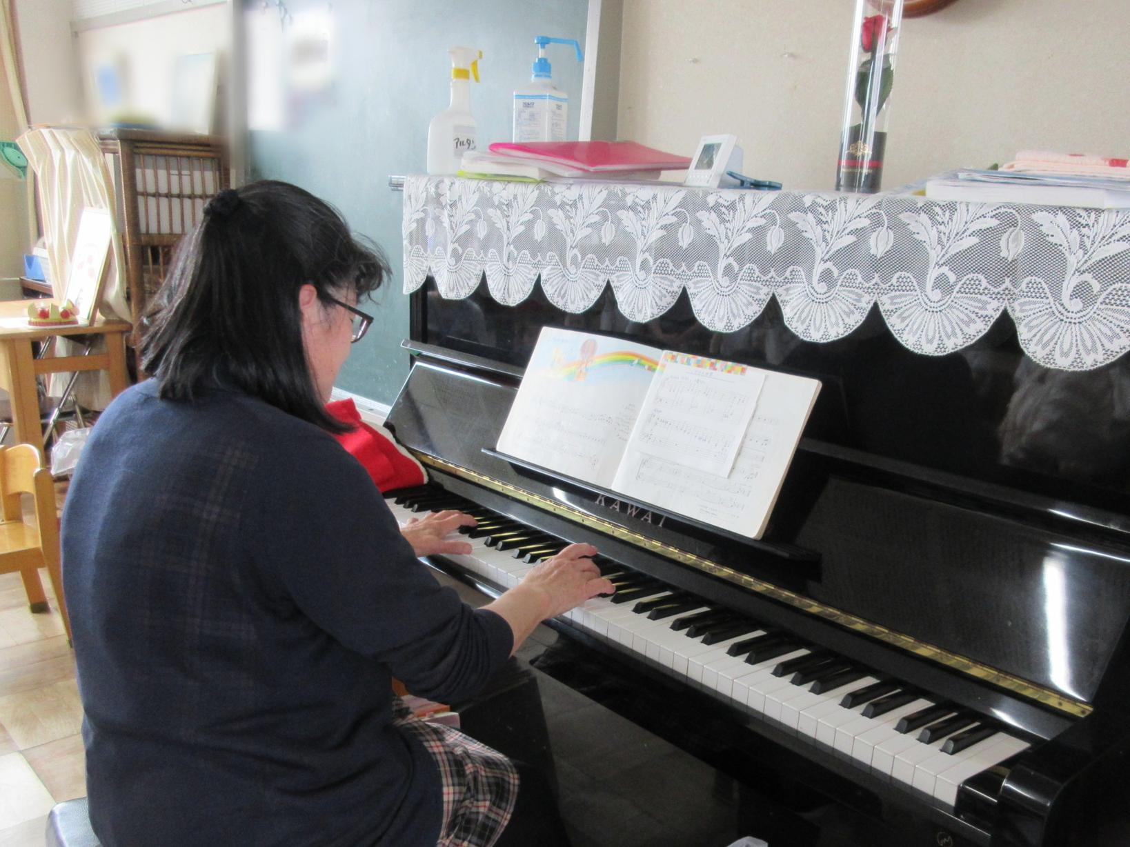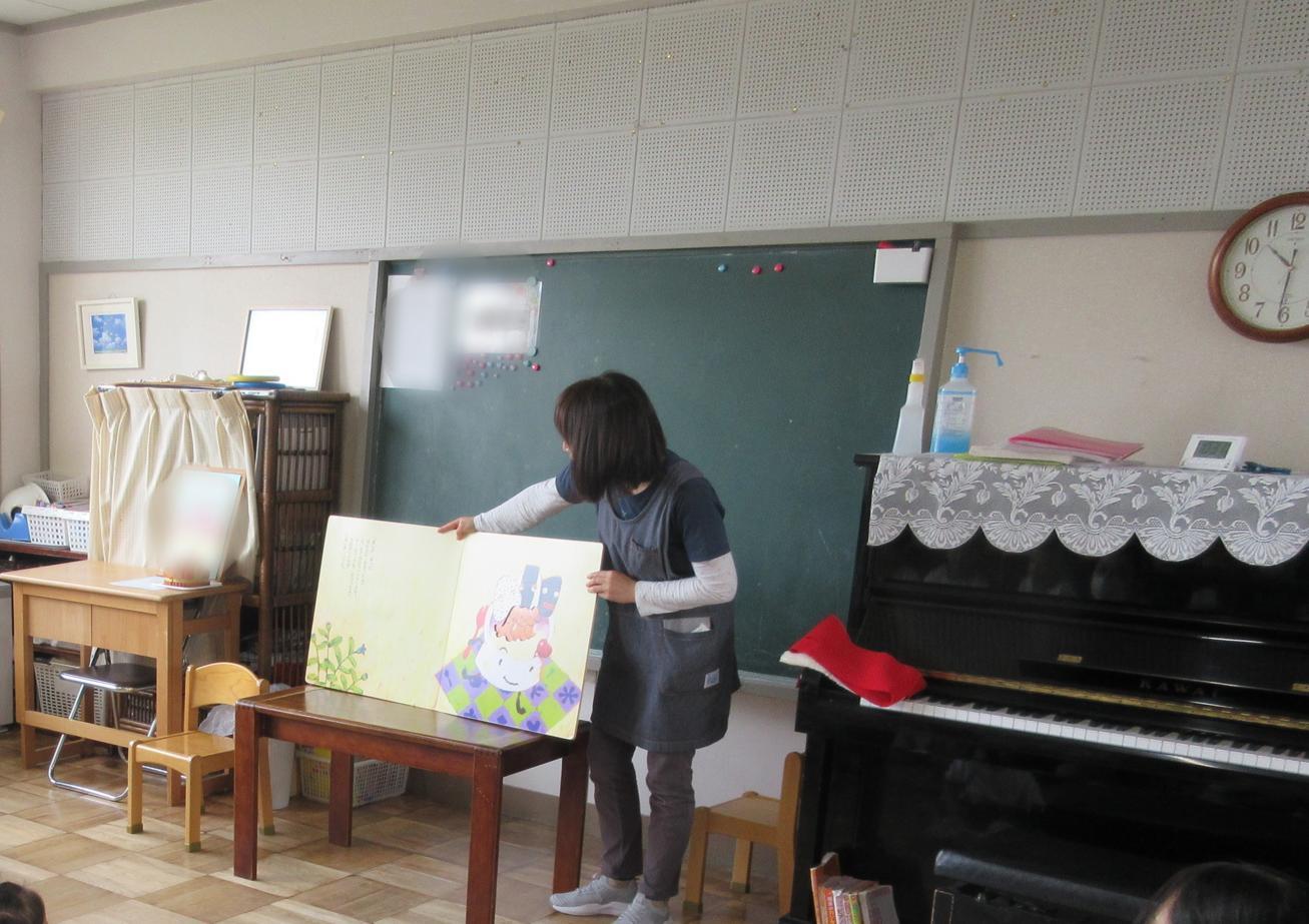 5月のお誕生日会 24/05/28 皆でお祝いした後、お楽しみ会で先生によるピアノ演奏「小さな世界」「ふうせん」を楽しみました。ピアノに合わせて口ずさむ子も!!小さなお友達は音色の心地よさに眠気を誘われていました。大型絵本「おべんとくん」も見ました。