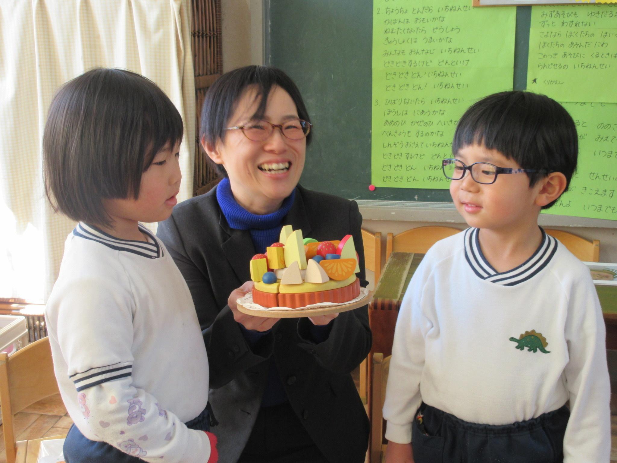 2月誕生会 25/03/03 2月のお誕生会を行いました。みんなからお祝いの歌や言葉をプレゼントしてもらい、とても嬉しそうでした。保育者からのプレゼント、「私は誰でしょうクイズ」では、お友達の目や鼻や口、先生の後ろ姿など、少し難しい問題もありましたが、「〇〇くん」「〇〇ちゃん」とすぐに正解する子どもたちでした。