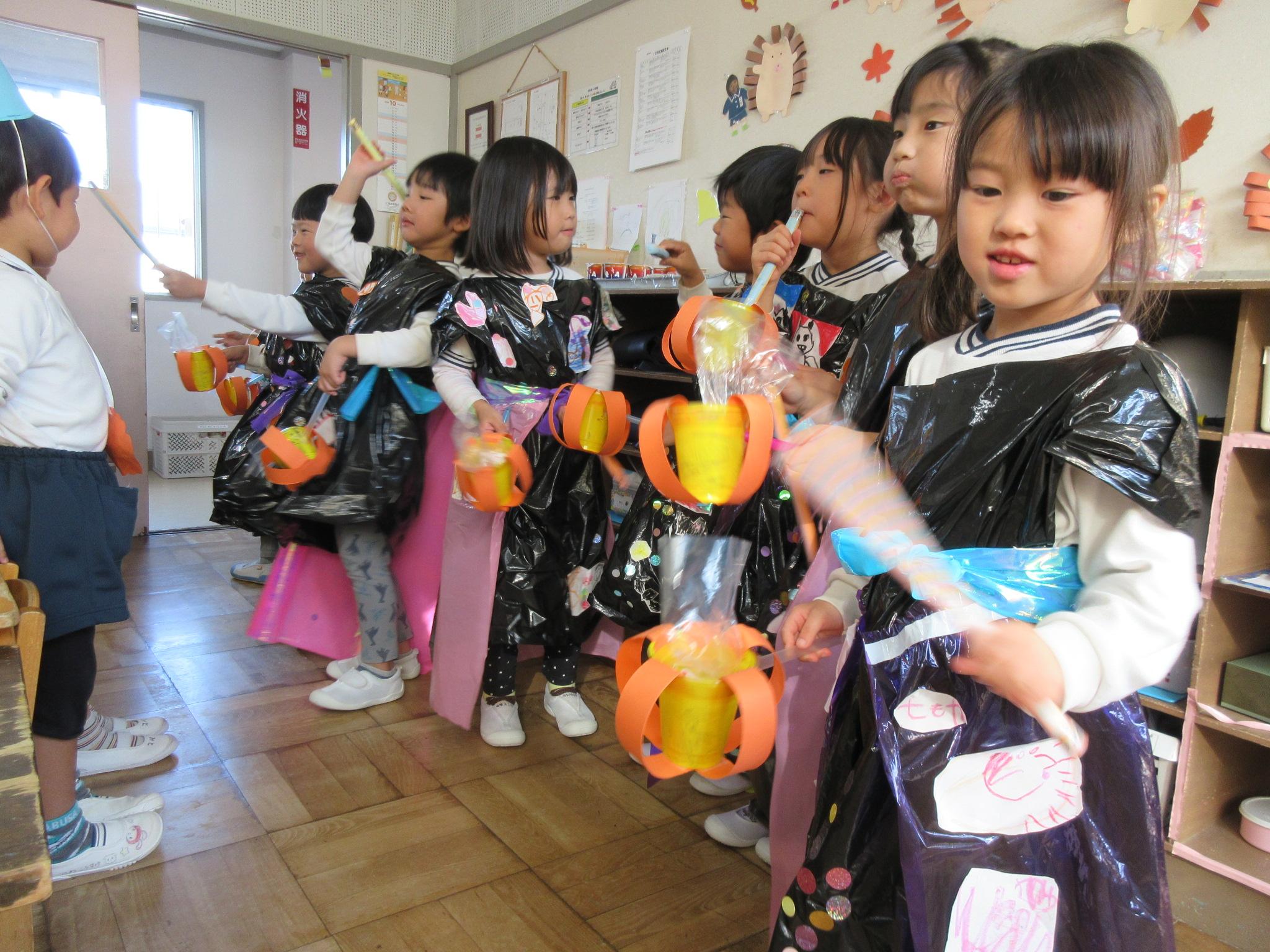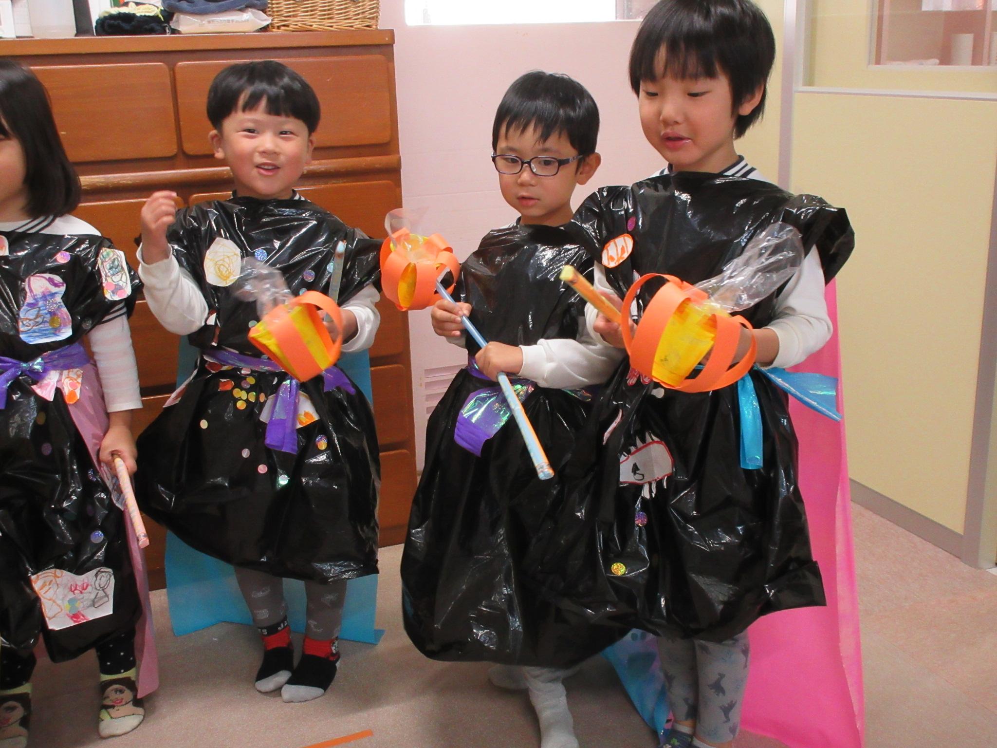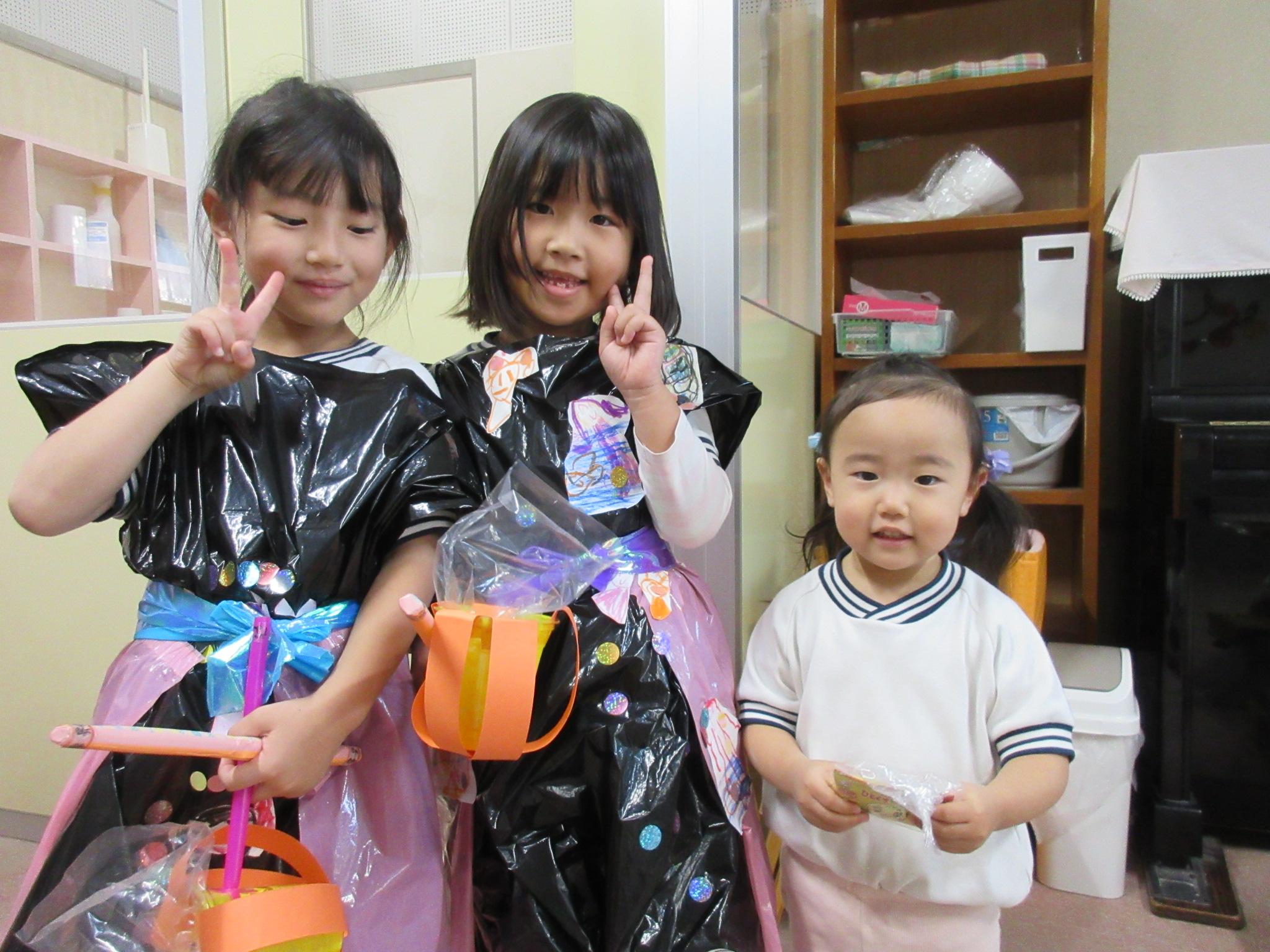 楽しかったねハロウィン 25/11/11 今年の仮装は、王子様とお姫様になりきって園内をパレードしてくれました。お友達の衣装をみて「かわいい~」「すごい!」という声があちこちで聞こえてきました。小さなクラスのお友達もキラキラした目で見つめていました。 「トリック・オア・トリート!」が響き、どのクラスも笑顔あふれ、にぎやかな幸せな一日となりました。