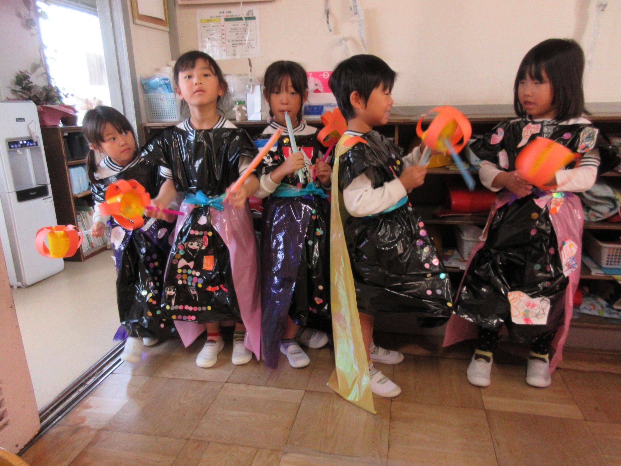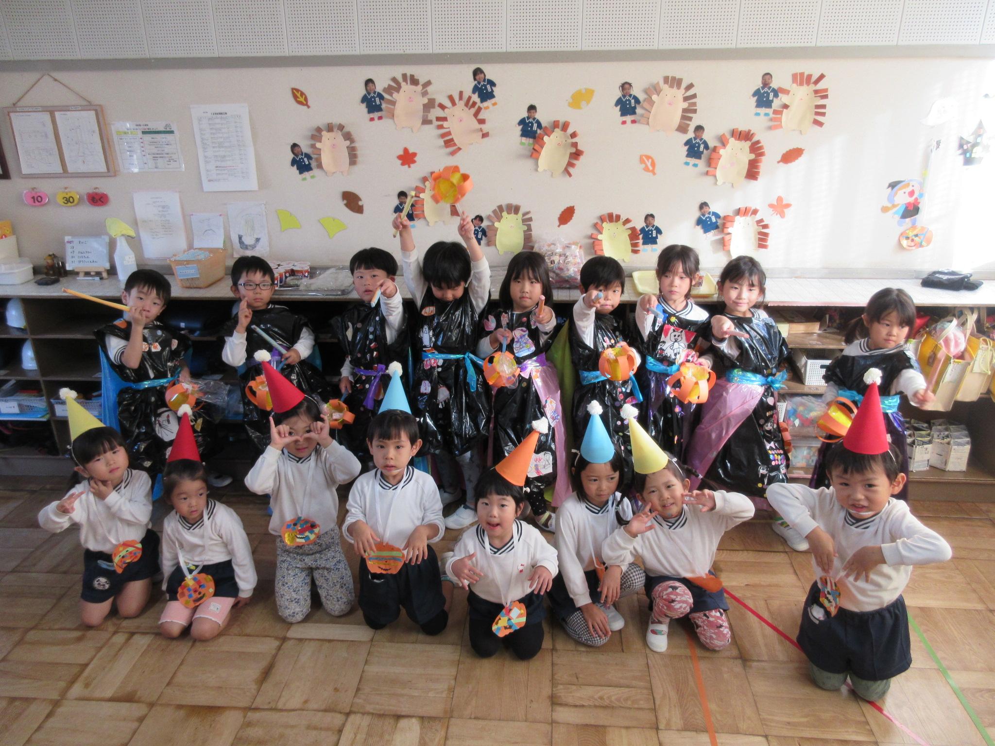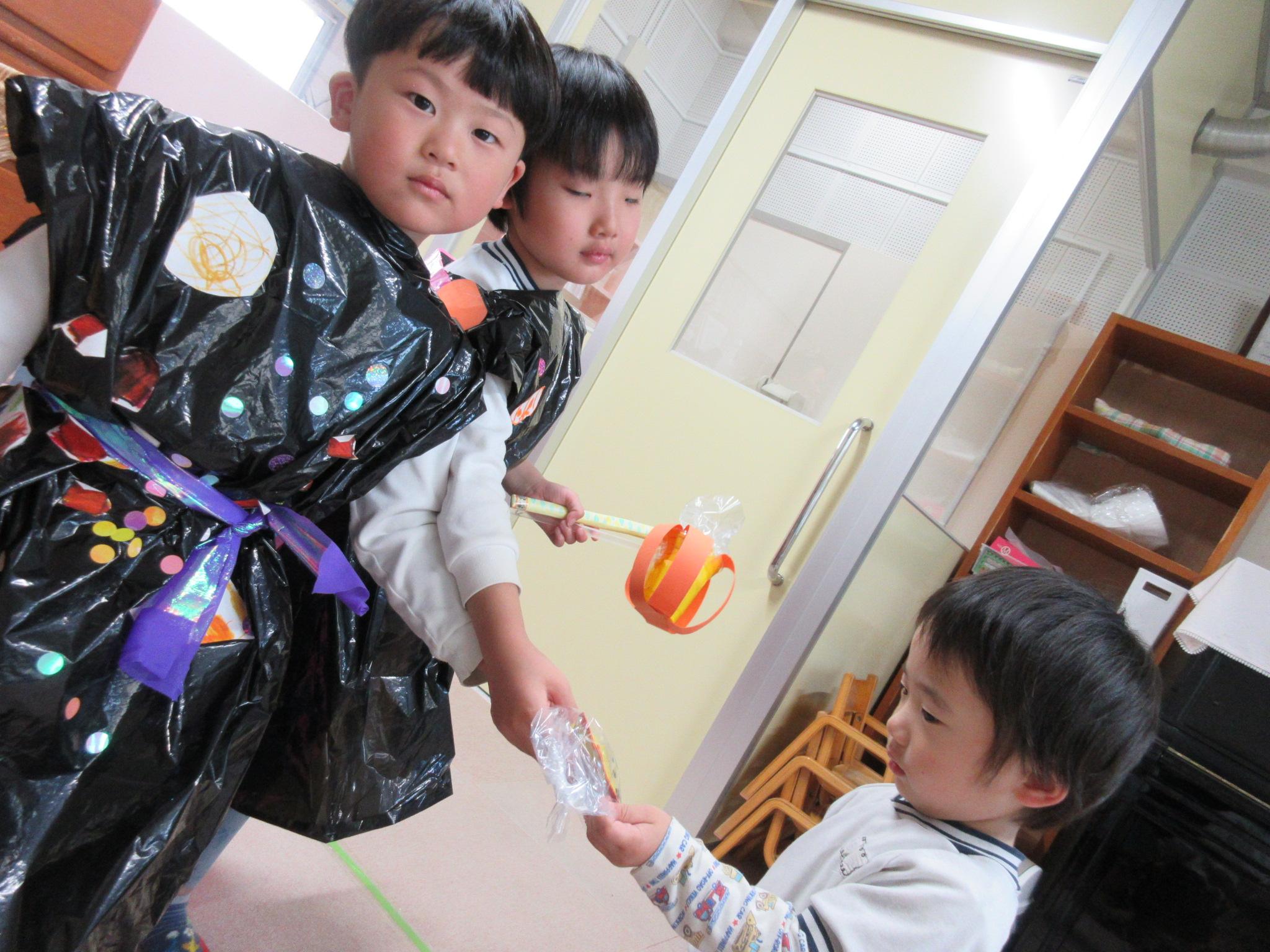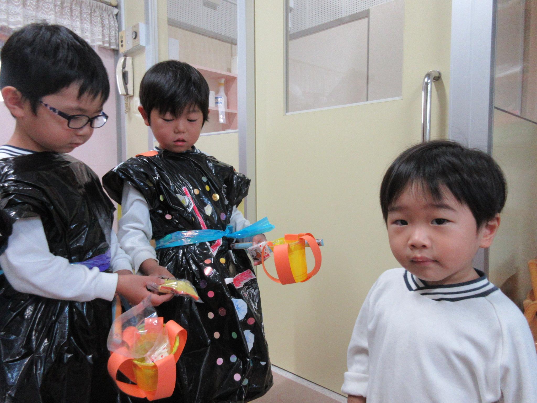 楽しかったねハロウィン 25/11/11 今年の仮装は、王子様とお姫様になりきって園内をパレードしてくれました。お友達の衣装をみて「かわいい~」「すごい!」という声があちこちで聞こえてきました。小さなクラスのお友達もキラキラした目で見つめていました。 「トリック・オア・トリート!」が響き、どのクラスも笑顔あふれ、にぎやかな幸せな一日となりました。